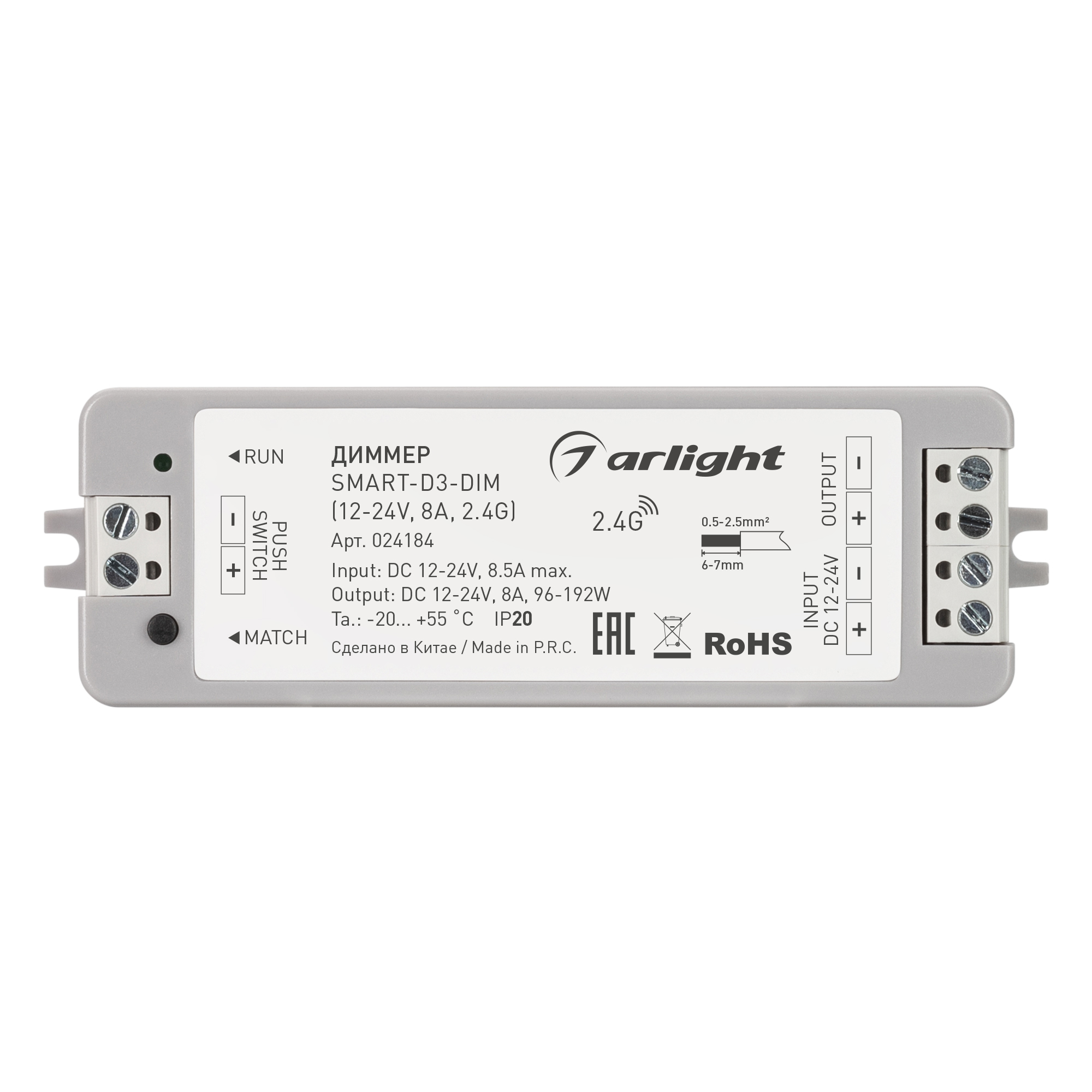 Диммер SMART-D3-DIM (12-24V, 8A, 2.4G) (Arlight, IP20 Пластик, 5 лет)