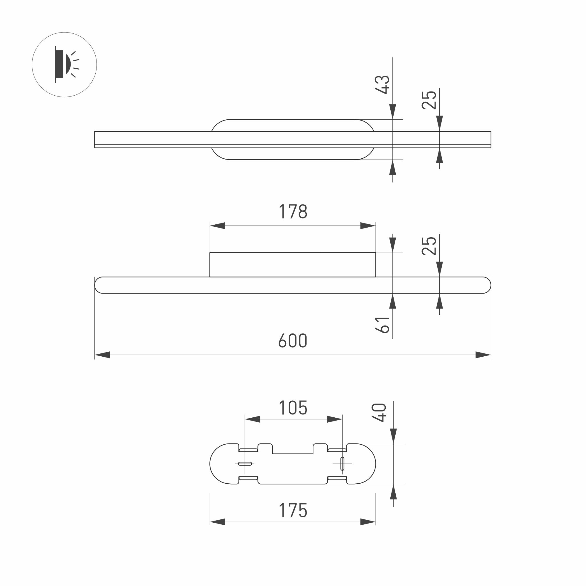 Декоративный настенный светильник. Мощность13 Вт, св. поток 630 лм, 52 лм/Вт, дневной 4000 K, CRI>90, угол 120°, напряжение питания 230 В. Белый фигурный корпус из алюминия, экран из матового поликарбоната, степень защиты IP54. Размер: длина 600 мм, ширина 60 мм, высота 42 мм. Размер светоизлучающего модуля: длина 600 мм, ширина 25 мм, высота 25 мм Монтаж накладной. Пульсация <0,5.