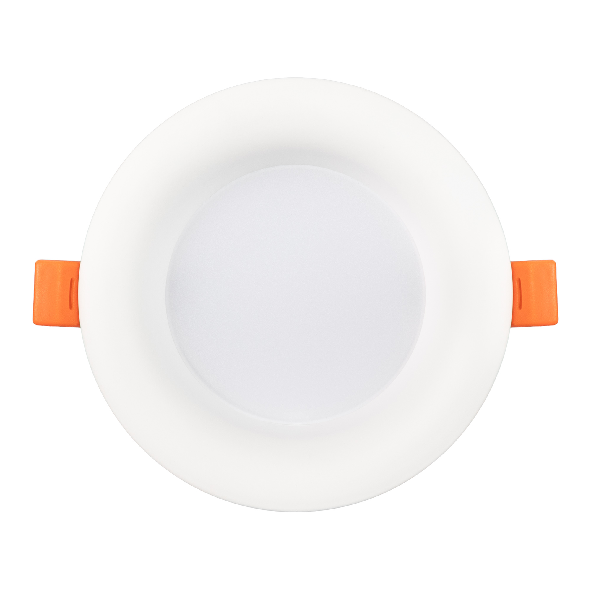 Встраиваемый светильник даунлайт с интегрированным в корпус драйвером. Мощность 10 Вт, св. поток 840 лм, 84 лм/Вт, дневной 4000 K, CRI>90, угол 100°, напряжение питания 230 В. Белый круглый корпус из алюминия, степень защиты IP20. Размер: диаметр 115 мм, высота 70 мм. Монтаж встраиваемый, установочное отверстие: диаметр 100 мм. Пульсация <2%.