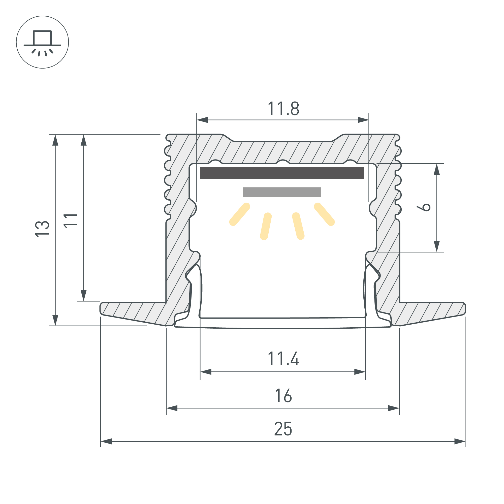 Встраиваемый профиль с накладным фланцем черного цвета из алюминия для контурной подсветки интерьера. Габаритные размеры профиля составляют 2000 мм в длину, 25 мм в ширину и 13 мм в высоту. Площадка для установки светодиодных лент позволяет использовать ленту шириной до 12 мм и мощностью до 15,2 Вт/м. Это обеспечивает гибкость в выборе светодиодных лент и создает потрясающие световые решения. Экран, заглушки и другие аксессуары не включены в комплект и приобретаются отдельно. Цена указана за 1 метр профиля. Отличное решение для создания современных световых проектов.