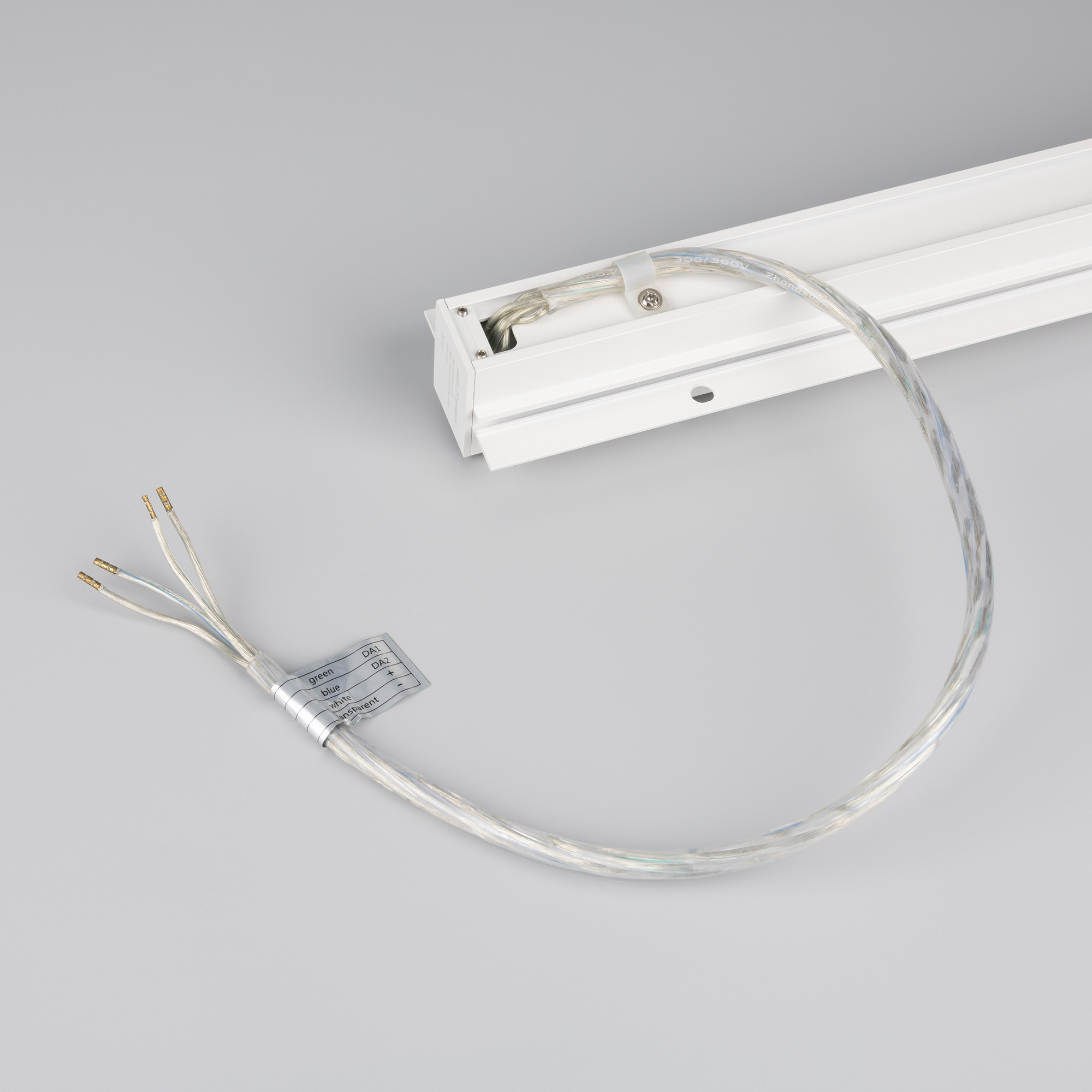 Встраиваемый магнитный трек с фланцем для монтажа в гипсокартонный потолок, длина 3000 мм. DC24V, позволяет диммировать светильники по протоколу DALI. Материал алюминий, цвет белый. Две заглушки в комплекте. Размер ДxШxВ: 3003x55x38 мм. Размер (с учетом заглушек и фланцев). К плате идет провод 24В длиной 1м.