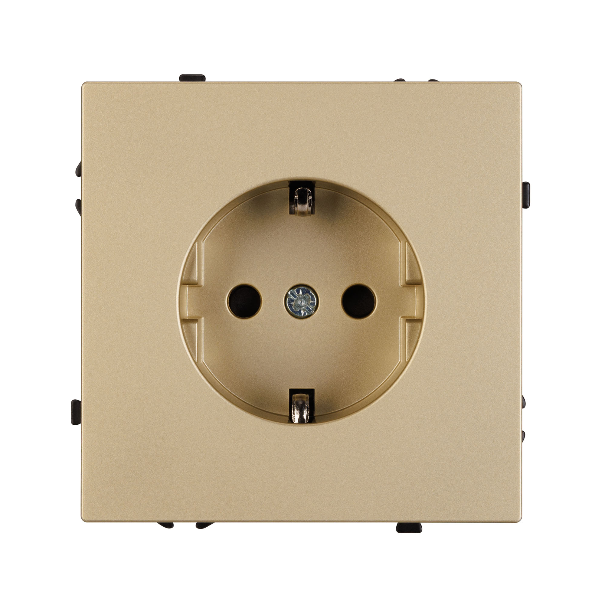 Строгие геометрические линии гармонично сочетаются с функциональностью продуманных механизмов, создавая идеальное решение для дизайн-проектов, где важны как эстетика, так и практичность. Механизм розетки с заземлением совместим с рамками серии NOBE, создает утонченный минималистичный вид. Скрытый тип монтажа позволяет гармонично встроить в интерьер любого современного дизайн-проекта. Видимая часть механизма выполнена из высококачественного пластика золотого цвета и имеет Soft-Touch покрытие, что придает изделию приятные тактильные ощущения и стильный внешний вид. Розетка оснащена заземляющими контактами и защитными шторками , обеспечивая надежное и безопасное подключение электроприборов. Соединение посредством быстрозажимных контактов, позволяет надежно подсоединить механизм розетки к питающим элементам, минимизируя затраченное время на монтаж. А усиленные распорные лапки двойного захвата надежно фиксируют механизм в установочном подрозетнике круглого сечения диаметром 60мм. Суппорт окрашен в черный матовый цвет под основу механизма и выполнен из металла толщиной 1,5мм, что обеспечивает безопасность и уверенность в установке. На каждой стороне суппорта размещены фиксирующие элементы, позволяющие комбинировать механизмы в системы до 5шт как горизонтально, так и вертикально.