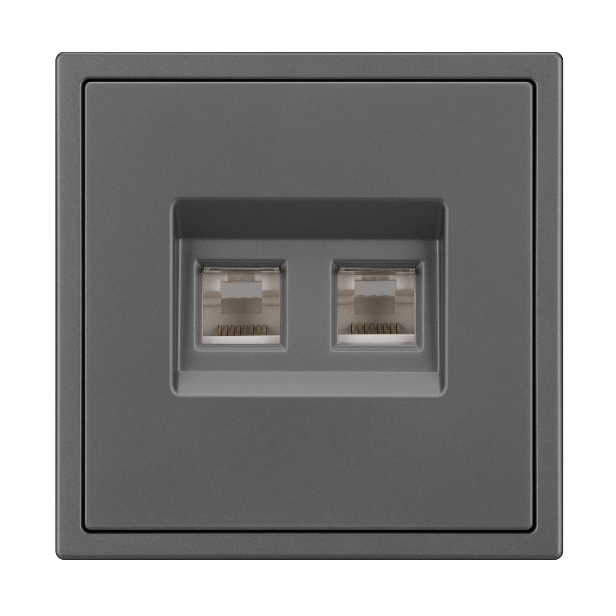 Механизм сдвоенной телефонной розетки SCT-NOBE-MTL2-SFPL-GR (RJ-11, 4C) (Arlight, Серый базальт)