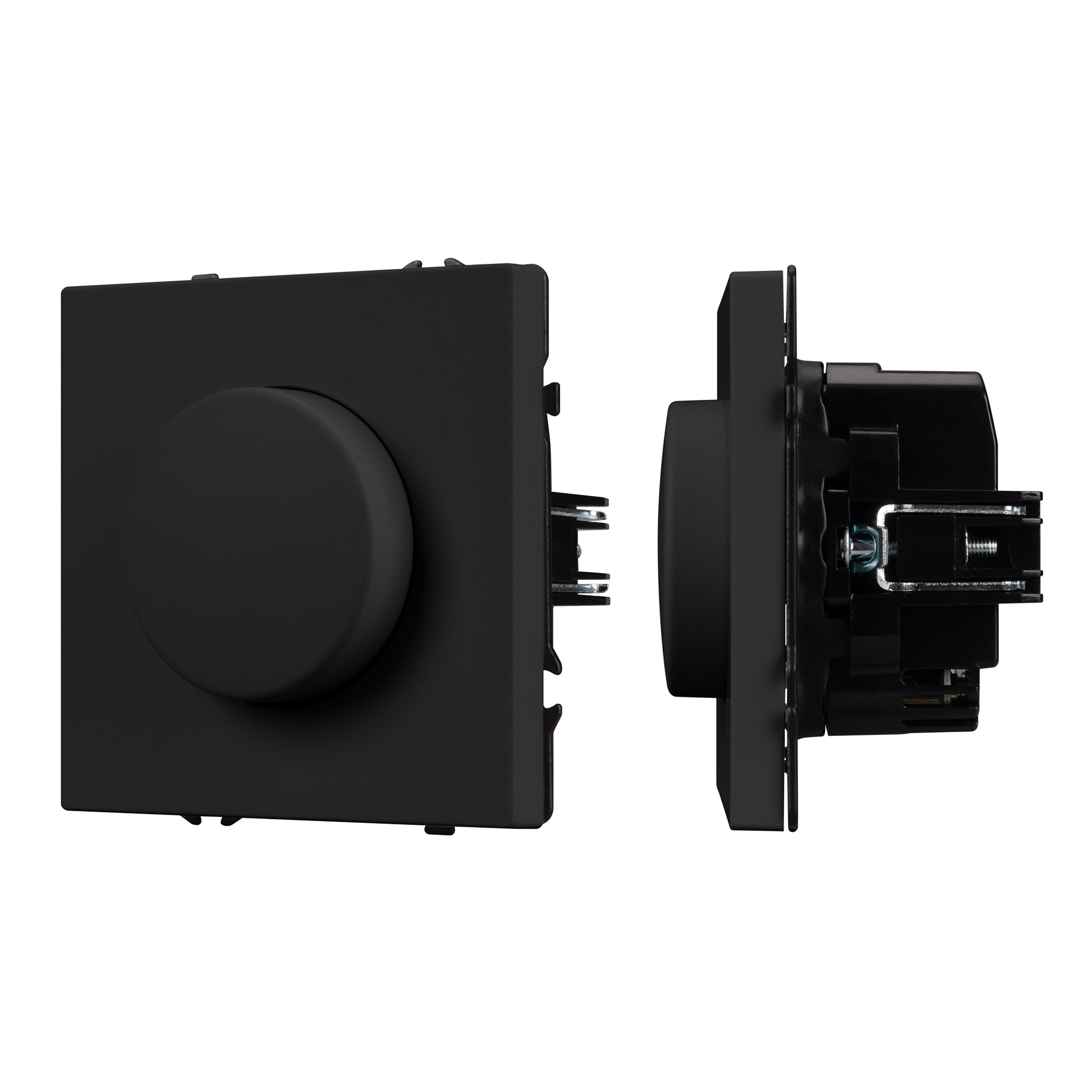 Строгие геометрические линии гармонично сочетаются с функциональностью продуманных механизмов, создавая идеальное решение для дизайн-проектов, где важны эстетика и практичность. Светорегулятор совместим с рамками серии NOBE, создавая утонченный минималистичный вид. Скрытый тип монтажа позволяет гармонично встроить в интерьер любого современного дизайн-проекта. Видимая часть механизма выполнена из высококачественного пластика цвета черный оникс и имеет Soft-Touch покрытие, что придает изделию приятные тактильные ощущения и стильный внешний вид. Настройка интенсивности освещения осуществляется за счет поворотной ручки (ротора). Она позволяет включать, выключать и регулировать свет и его яркость. Светорегулятор предназначен для управления светодиодными (до 150Вт) или другими источниками света (до 300Вт) с напряжением питания 230В. Суппорт окрашен в черный матовый цвет под основу механизма и выполнен из металла толщиной 1,5мм, что обеспечивает безопасность и уверенность в установке. На каждой стороне суппорта размещены фиксирующие элементы, позволяющие комбинировать механизмы в системы до 5шт как горизонтально, так и вертикально.