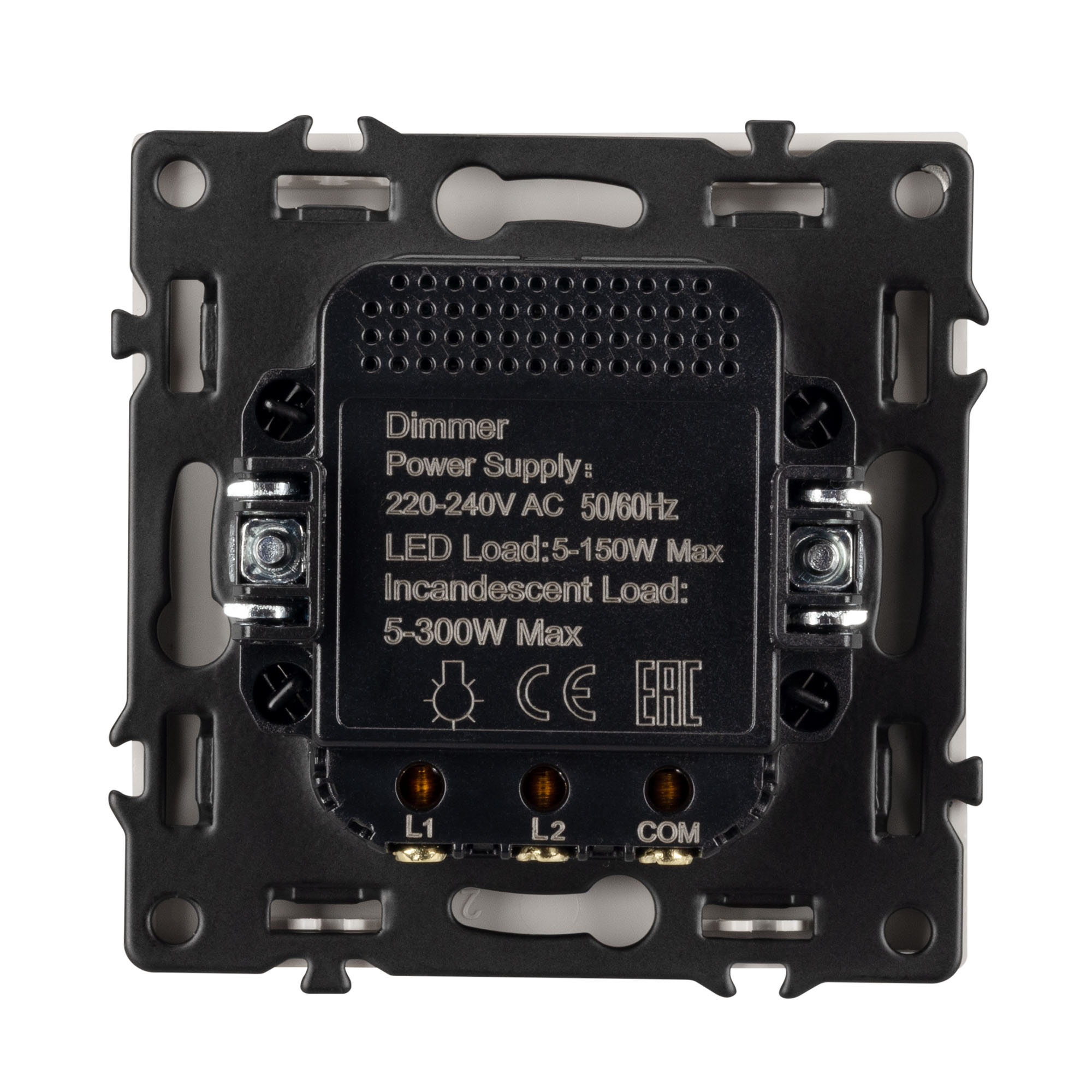 Строгие геометрические линии гармонично сочетаются с функциональностью продуманных механизмов, создавая идеальное решение для дизайн-проектов, где важны эстетика и практичность. Светорегулятор совместим с рамками серии NOBE, создавая утонченный минималистичный вид. Скрытый тип монтажа позволяет гармонично встроить в интерьер любого современного дизайн-проекта. Видимая часть механизма выполнена из высококачественного пластика цвета золотой песок и имеет Soft-Touch покрытие, что придает изделию приятные тактильные ощущения и стильный внешний вид. Настройка интенсивности освещения осуществляется за счет поворотной ручки (ротора). Она позволяет включать, выключать и регулировать свет и его яркость. Светорегулятор предназначен для управления светодиодными (до 150Вт) или другими источниками света (до 300Вт) с напряжением питания 230В. Суппорт окрашен в черный матовый цвет под основу механизма и выполнен из металла толщиной 1,5мм, что обеспечивает безопасность и уверенность в установке. На каждой стороне суппорта размещены фиксирующие элементы, позволяющие комбинировать механизмы в системы до 5шт как горизонтально, так и вертикально.