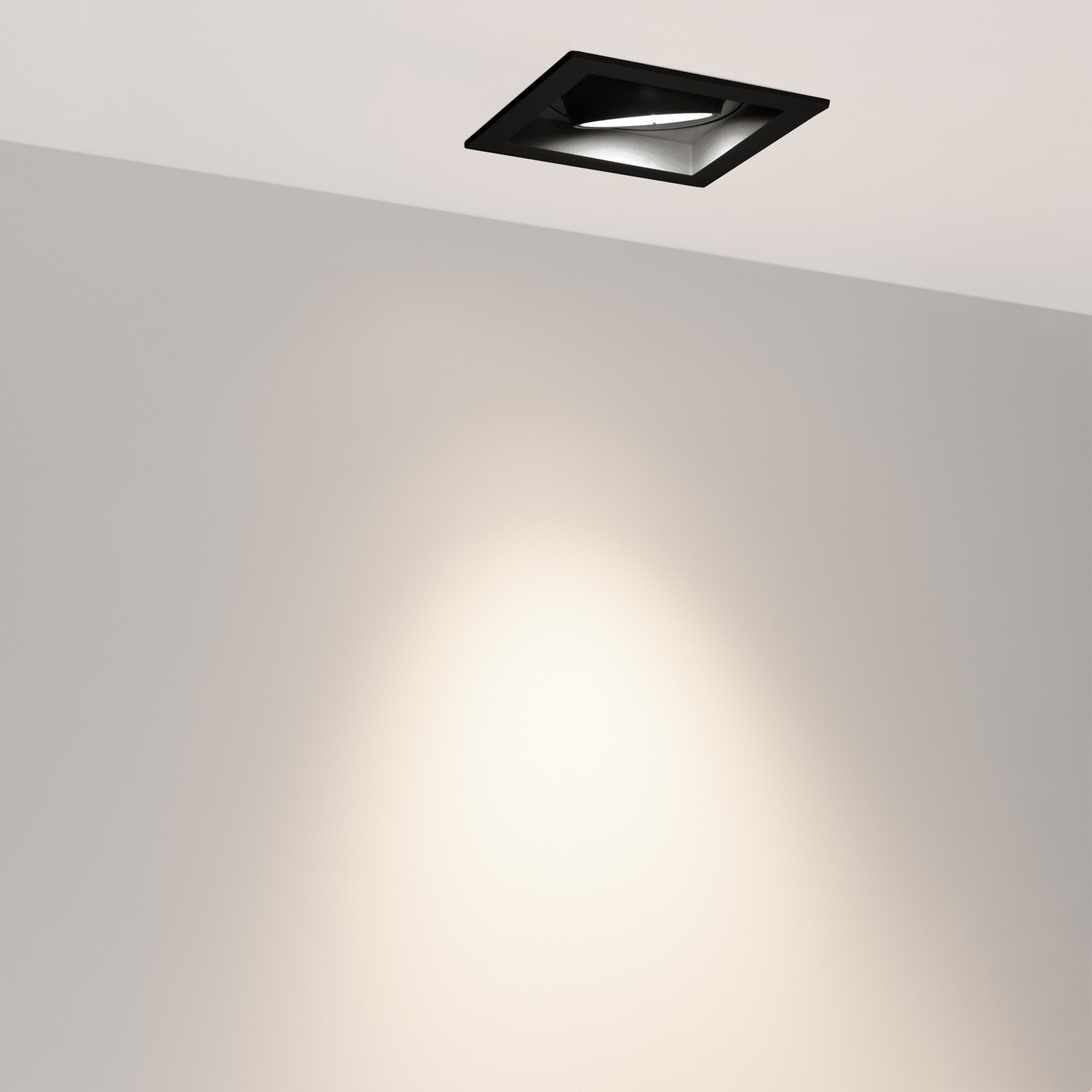 Поставка под заказ от 60 шт. Встраиваемый карданный светильник. Мощность 20 Вт, св. поток 2132 лм, 106 лм/Вт, дневной 4000 K, CRI>92, угол 40°, напряжение питания 230 В. Чёрный корпус из алюминия, чёрная вставка, степень защиты IP20. Размер: длина 117 мм, ширина 117 мм, высота 105 мм. Монтаж встраиваемый, установочное отверстие: длина 95 мм, ширина 95 мм. Драйвер 24-42 В, 500 мА, пульсация <2%.
