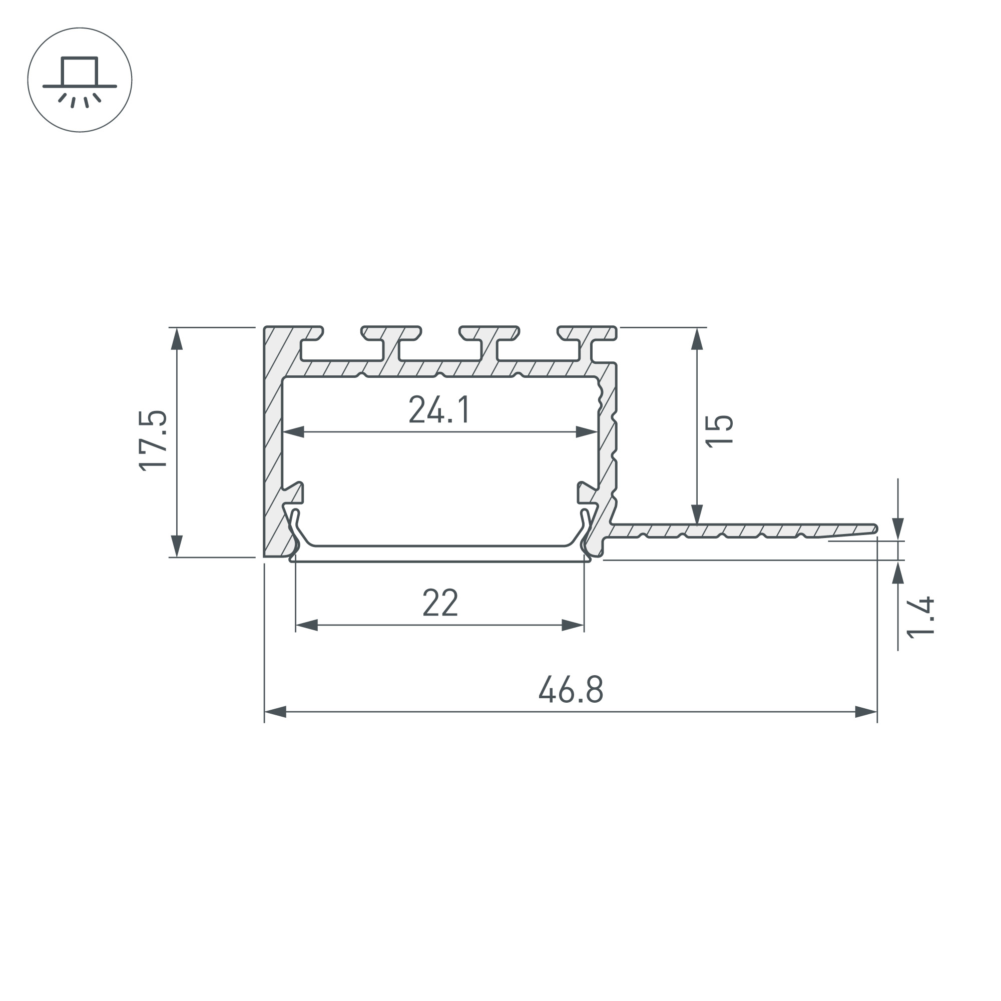 Угловой встраиваемый профиль со скрытым фланцем под строительную отделку из алюминия для установки в гипсокартон толщиной 16 мм для контурной подсветки. Габаритные размеры профиля составляют 2000 мм в длину, 46,8 мм в ширину и 17,5 мм в высоту. Площадка для установки светодиодных лент позволяет использовать ленту шириной до 24 мм и мощностью до 37 Вт/м. Это обеспечивает гибкость в выборе светодиодных лент и создает потрясающие световые решения. Экраны, заглушки и другие аксессуары не включены в комплект и приобретаются отдельно. Цена указана за 1 метр профиля. Отличное решение для создания современных световых проектов.