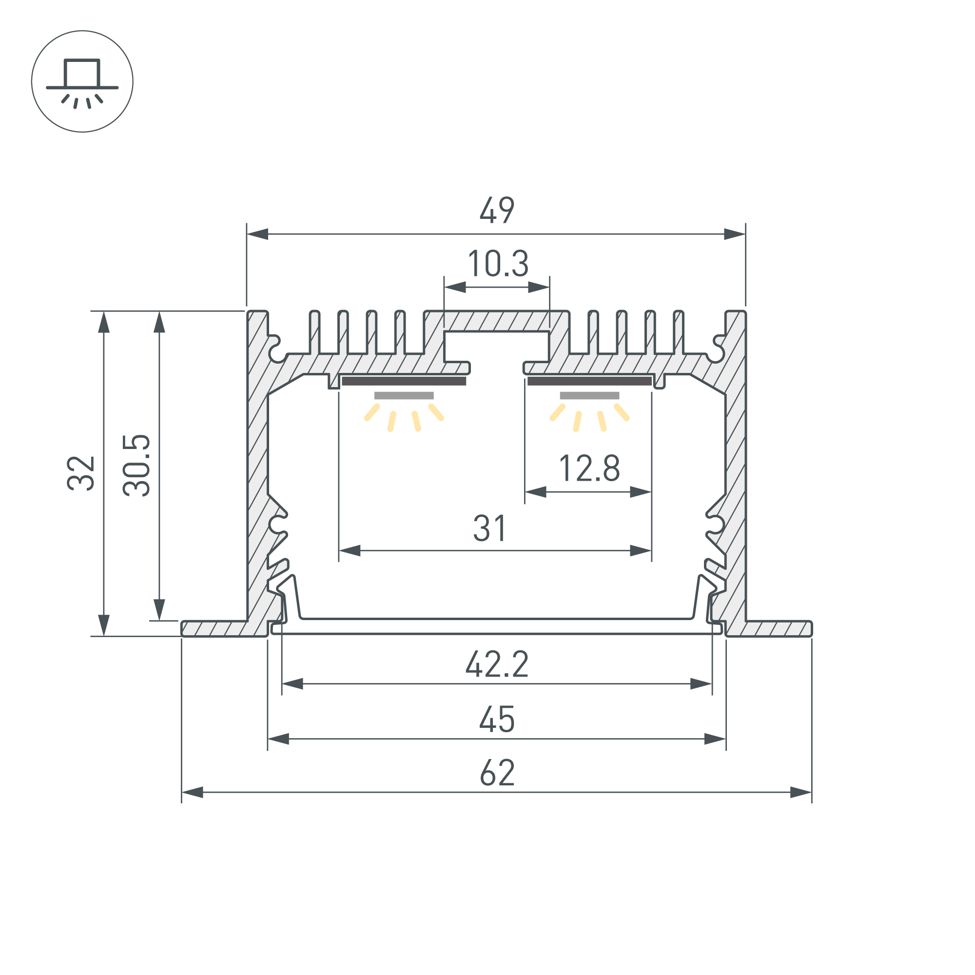 Встраиваемый алюминиевый профиль черного цвета с накладным фланцем для основной и контурной подсветки помещений. Габаритные размеры профиля составляют 2000 мм в длину, 62 мм в ширину и 32 мм в высоту, паз для установки 49 мм. Площадка для установки светодиодных лент позволяет использовать ленту шириной до 31мм и мощностью до 46,4 Вт/м. Это обеспечивает гибкость в выборе светодиодных лент и создает потрясающие световые решения. Экраны, заглушки и другие аксессуары не включены в комплект и приобретаются отдельно. Цена указана за 1 метр профиля. Отличное решение для создания современных световых проектов.