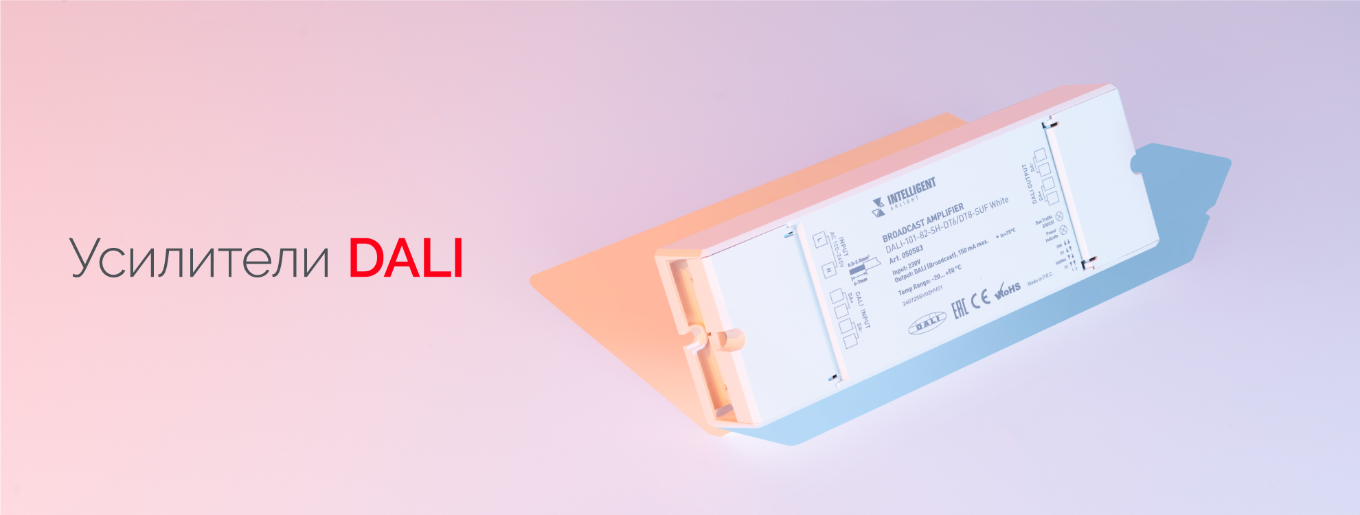 Усилители DALI служат для удлинения линии и для ретрансляции команд с основной линии DALI на дополнительную в виде широковещательных команд Broadcast. Это позволяет увеличить количество устройств, которые можно подключить к шине DALI.