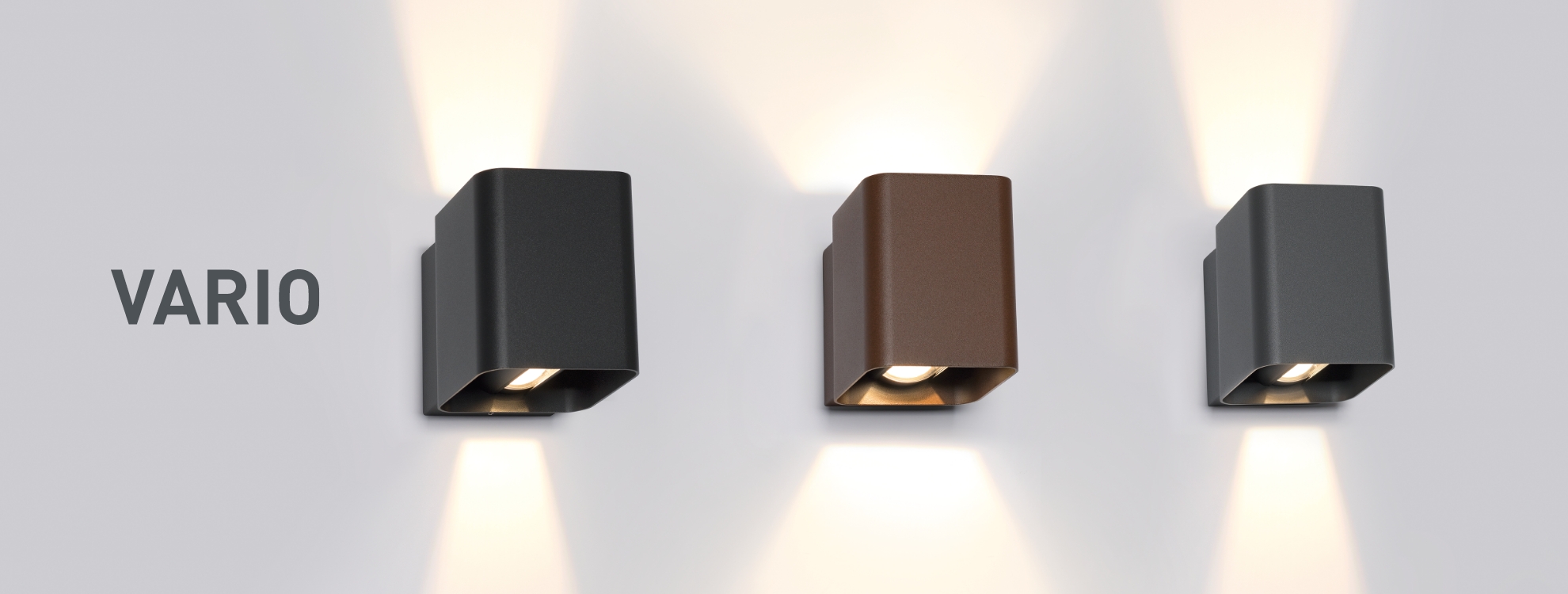 Уличный светодиодный светильник для стен с изменяемым углом излучения 0–80° и двусторонним свечением вверх-вниз. Оснащен шторками, которые позволяют независимо для каждого направления регулировать угол излучения.