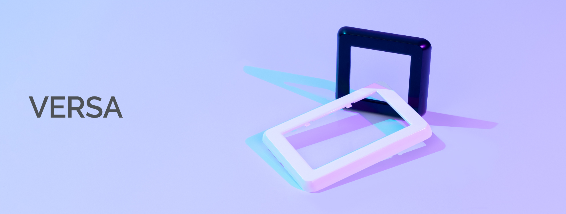 Благодаря минимализму в дизайне, матовой поверхности лицевой стороны рамки, а также классической расцветке (черный, белый, серебристый) возможно создать необычные комбинации в интерьере. Рамки VERSA изготовлены из тугоплавкого пластика, это позволяет надежно зафиксировать их на суппорте механизма.