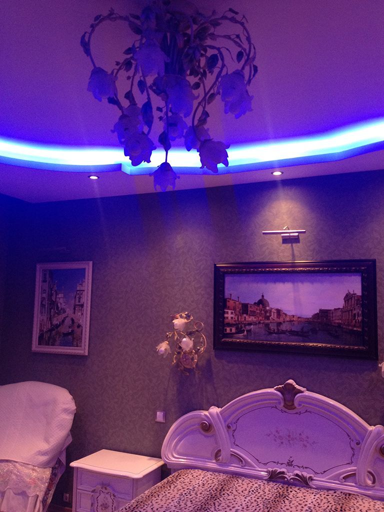 Она была установлена во все ниши: объемные формы у стен и, конечно же, многоуровневые потолки.