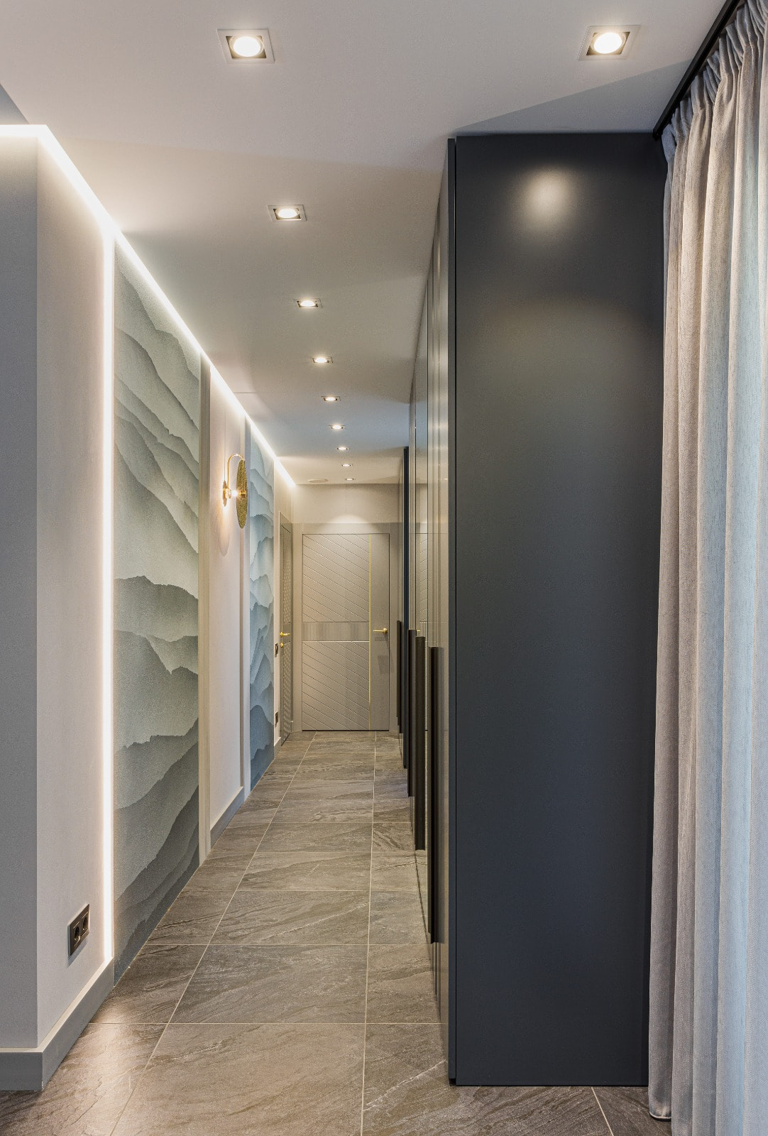 Сложные оттенки моментально реагируют на смену освещения, раскрывая интерьер с новой стороны. И речь не только о естественном свете. Каждая комната оборудована многоуровневой системой освещения, которая позволяет создавать различные световые сценарии.
