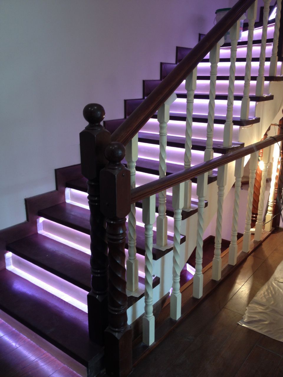 Многоцветная светодиодная подсветка лестницы в частном доме в коттеджем поселке "Белый Берег"