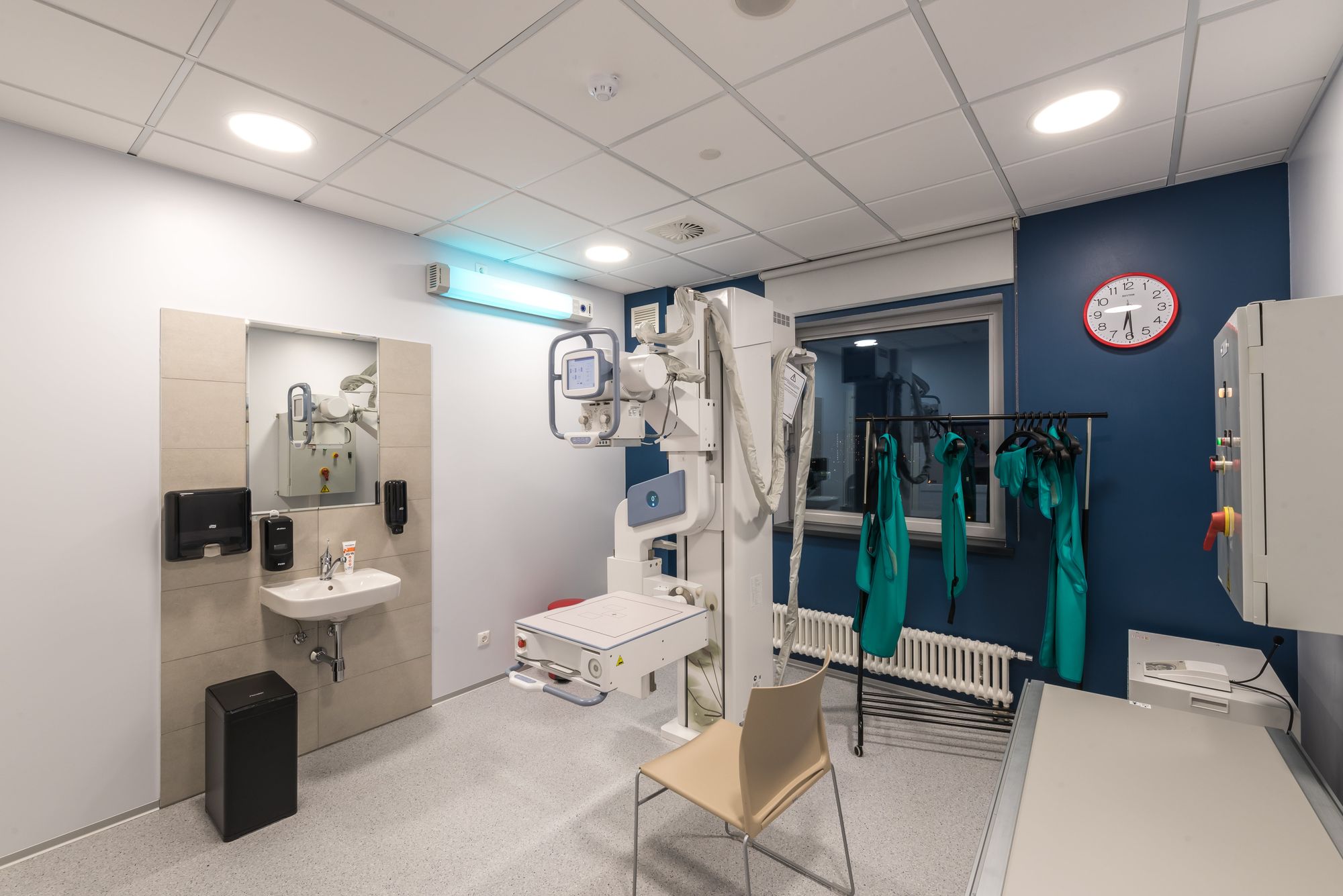 Изящные и тонкие светильники серии DL могут встраиваться в натяжные и гипсокартонные потолки небольшой толщины. В данном проекте светильники выполняют роль основного освещения в медицинских кабинетах, обеспечивают прекрасный рассеянный свет, комфортный для глаз. Блоки аварийного питания позволяют светильникам работать в дежурном режиме при внезапном отключении освещения.