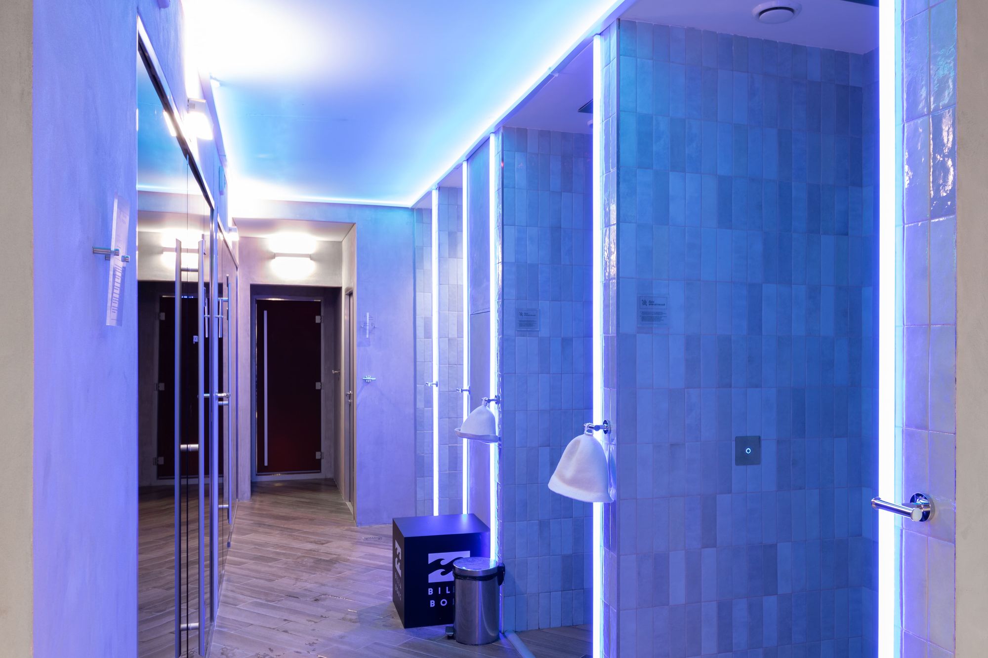 Подвесные светильники из дугового профиля управляются по протоколу DALI и DMX512 с возможностью реализации динамического освещения под фоновую музыку. В серфинг-центре предусмотрены датчики движения в проходных зонах и аварийное освещение.