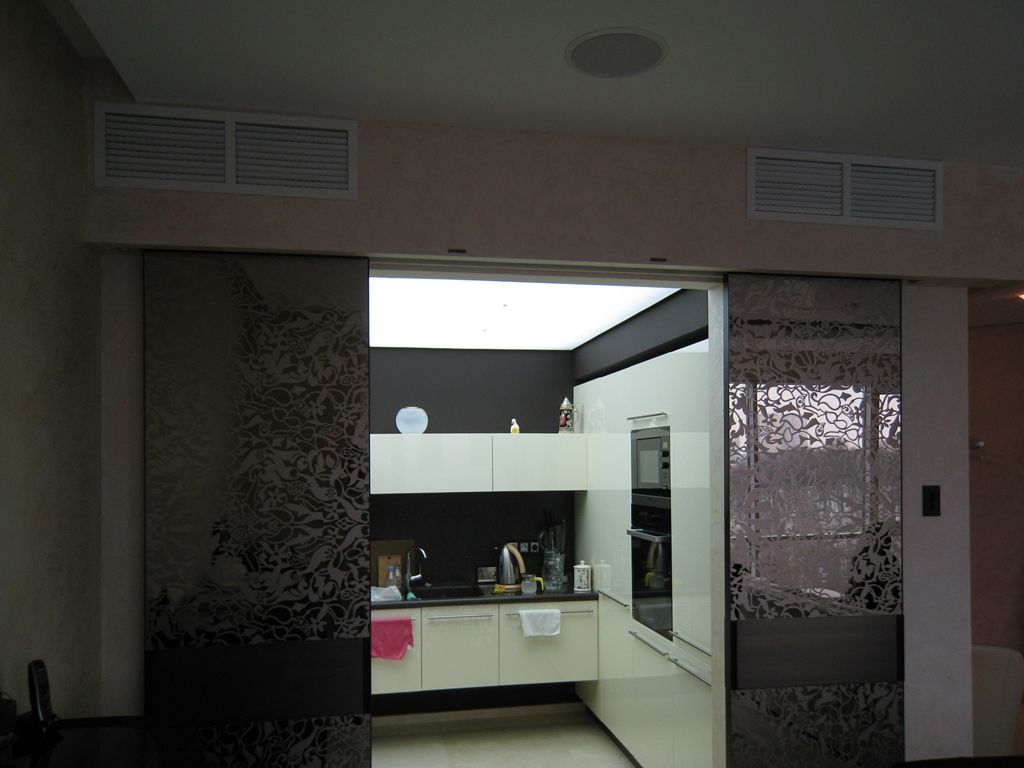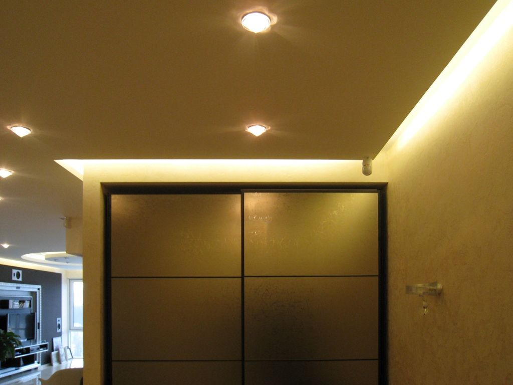 В данном проекте было реализовано необычное решение основного освещения в квартире. В различных помещениях нет привычного центрального источника света. Освещение осуществляется рассеянным светом, который реализуется при помощи закарнизной светодиодной подсветки, светодиодных светильников arlight® и белых витражных светопропускающих потолков со светодиодной лентой arlight®.