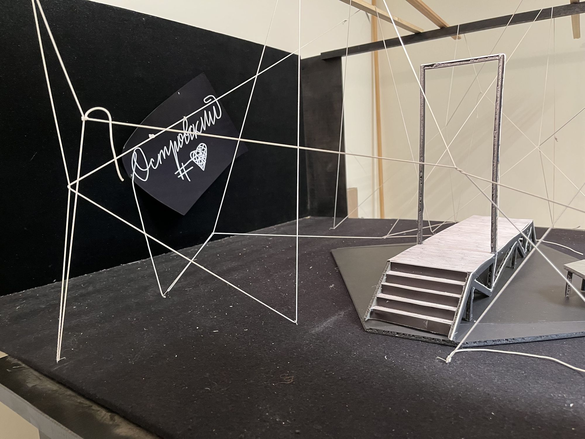 Композиция из ломаных линий света, напоминающая переплетения паутины, — это прекрасная альтернатива привычным театральным декорациям. Идея осуществилась благодаря круглому гибкому профилю WPH FLEX и RGB-ленте. Управление по протоколу SPI позволяет не только настраивать любые оттенки свечения ленты, но и создавать различные динамические эффекты, что немаловажно для оформления сценической площадки. Возведенный на ней помост также очерчен линией света по контуру, что выделяет конструкцию на темном фоне.