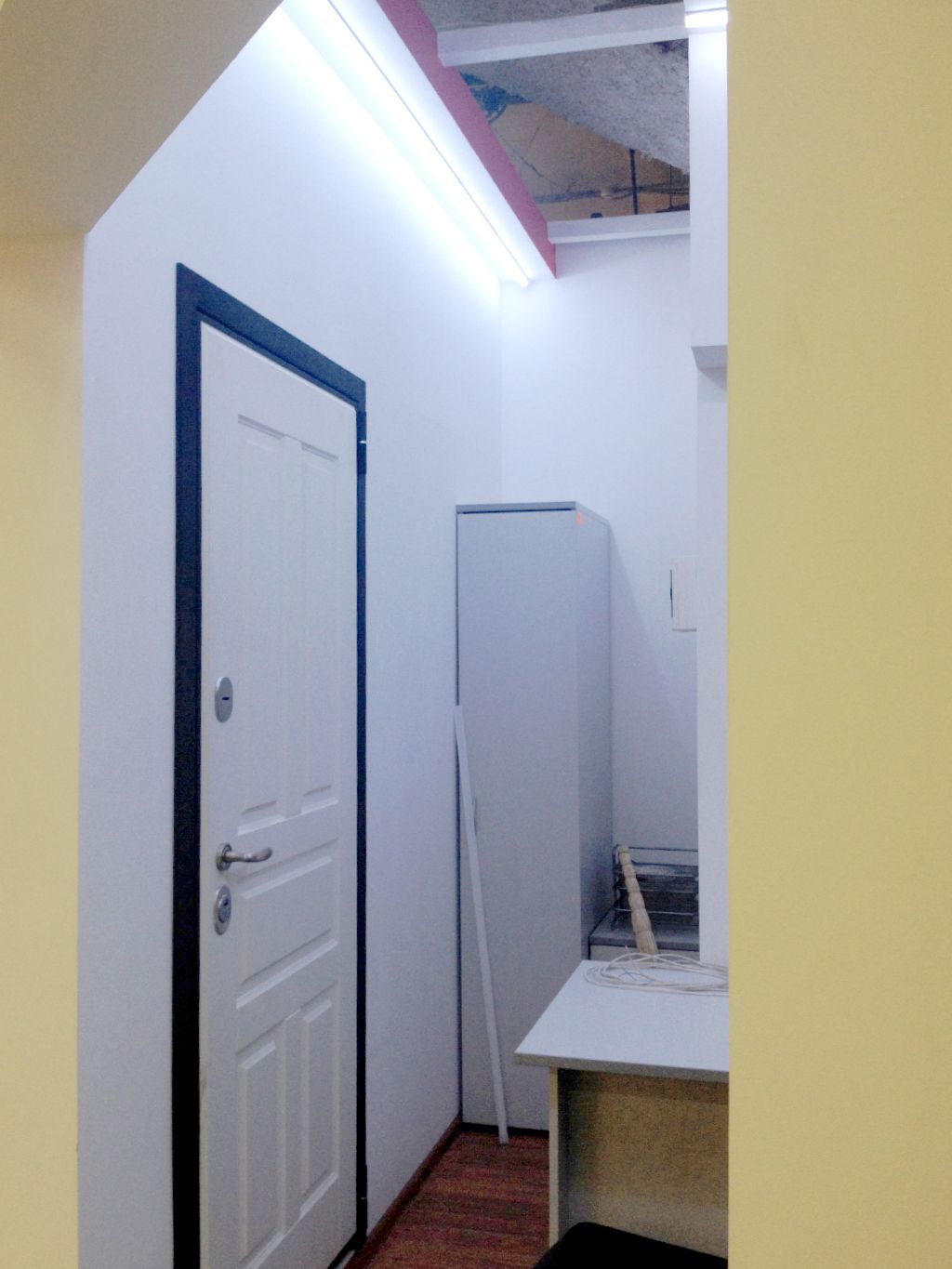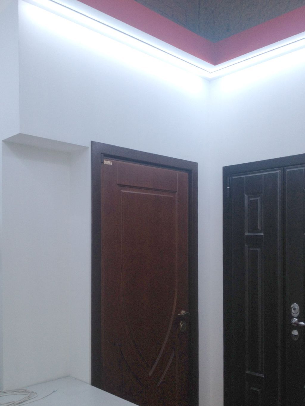 Многоцветная светодиодная подсветка образцов дверей в павильонах торговых центров. Подсветка была выполнена линейными светодиодными светильниками arlight®, изготовленными из алюминиевого профиля с объемным экраном и многоцветной светодиодной ленты arlight®.