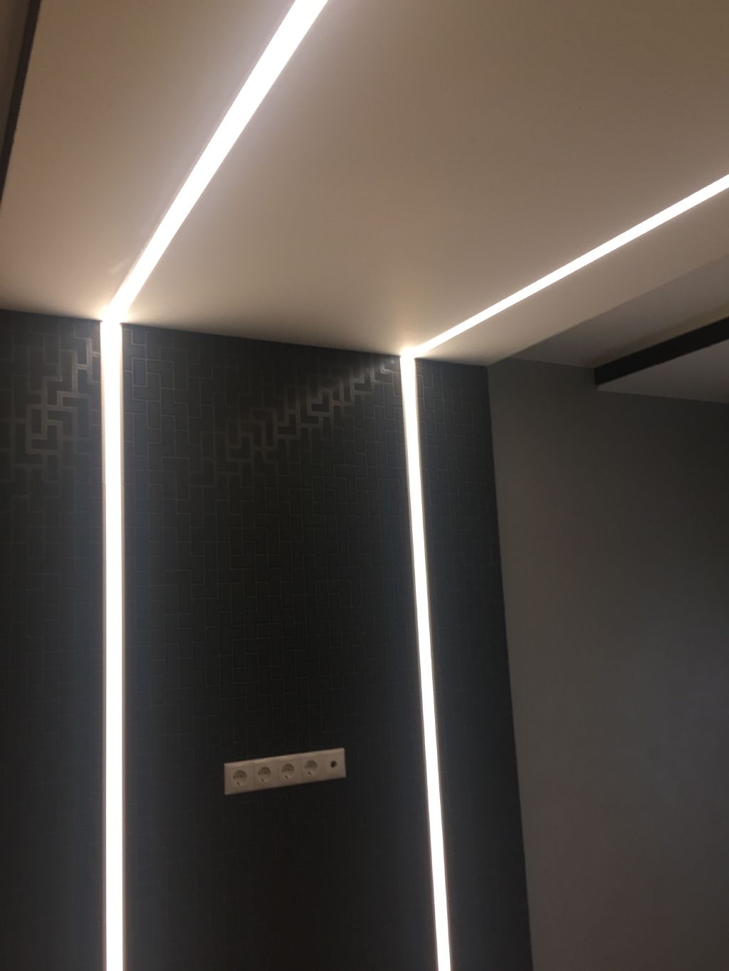 В данной квартире был выполнен проект по созданию линий света и организации подсветки потолков.