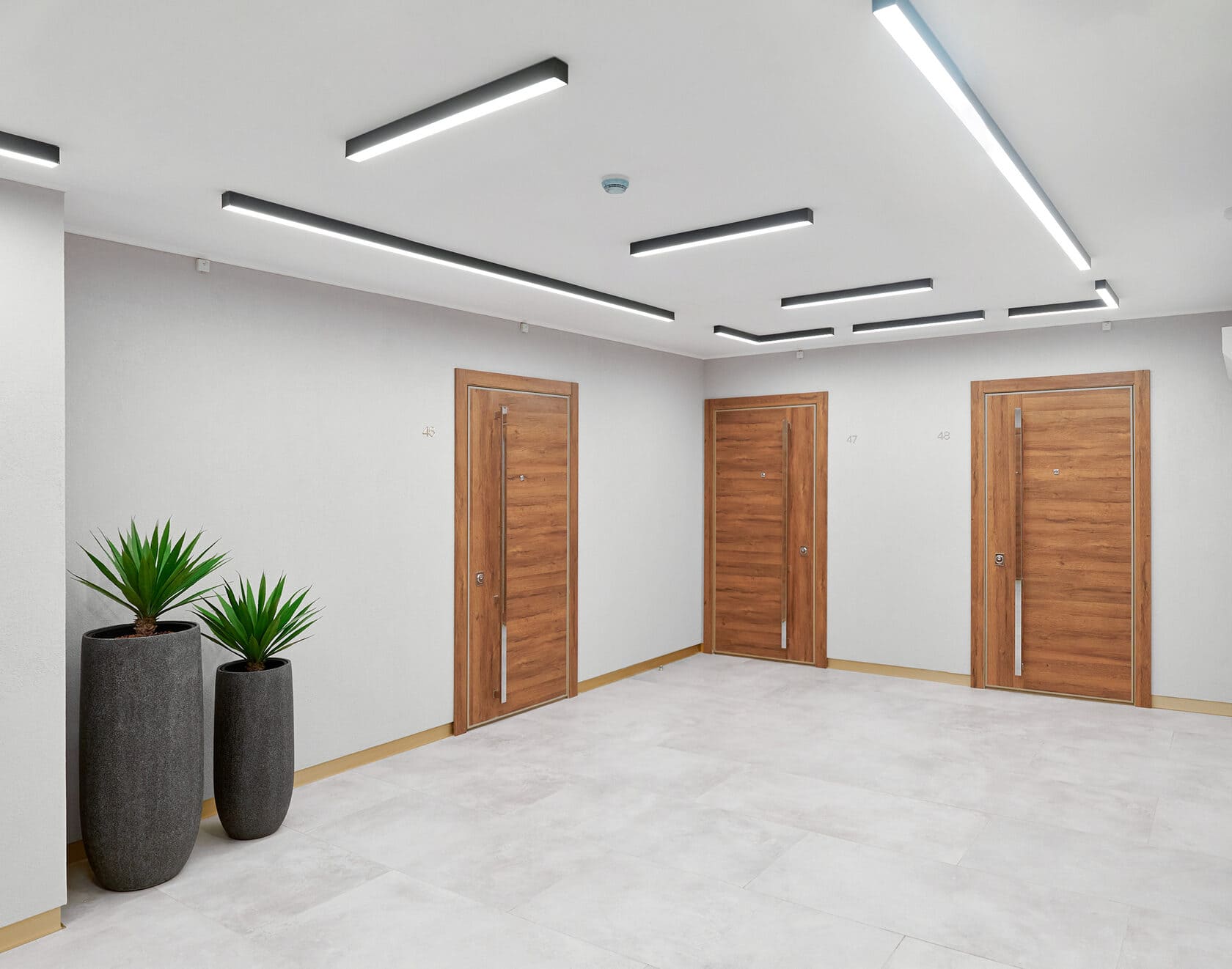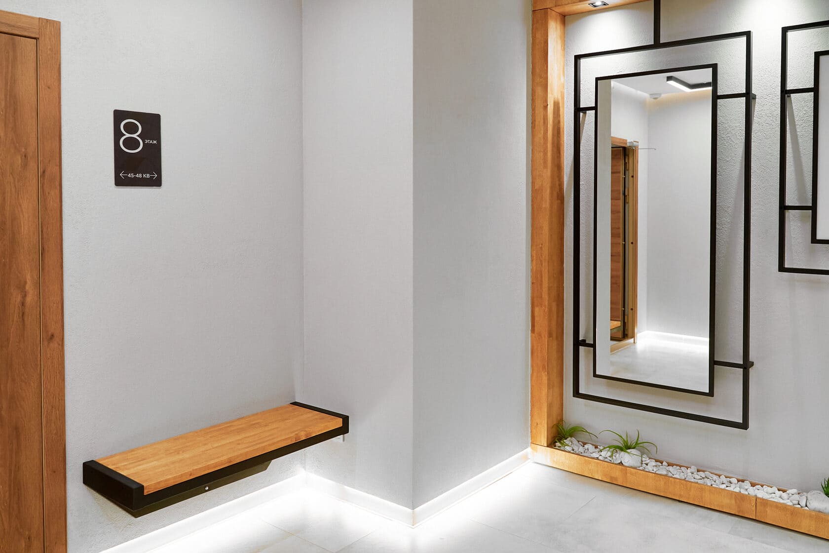 При планировании мест общего пользования в ЖК «Экопарк» стояла задача, чтобы общественные пространства воспринимались как продолжение квартиры, были эстетичны, функциональны и гармоничны. И освещение во многом помогло добиться желаемого эффекта.
